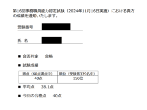 私が合格した2024年は60点満点中40点で合格、339人中162人合格で合格率は約47.8%でした。