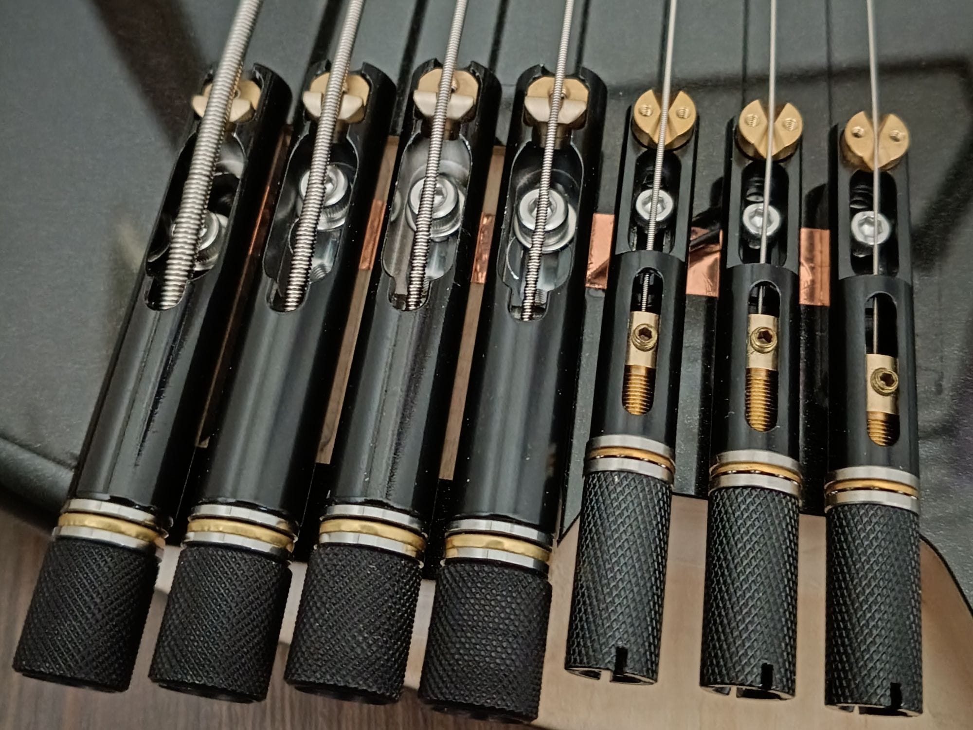 さらに、元々の弦間ピッチが17mmと若干狭いことから、ベース用とギター用の独立ブリッジを組み合わせる等の工夫も必要でしょう。